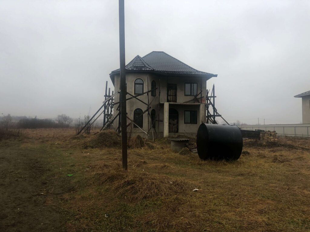 The village landscape is contradictory. Derelict kolkhoz and timber factory buildings never fail to elicit head-shaking from interlocutors over the age of 50, who lament the place’s decline. Yet in 2025, the mayor claimed ‘city’ status (misto, Ukrainian) based on 10,444 registered inhabitants, while economic vitality appears to flourish through ostentatious ‘palace halls’ – some funded by border trafficking, rumours say – and uncanny alleys of identical villas lining roadsides. Looking closer, the structures seem lifeless and many houses are still under construction.